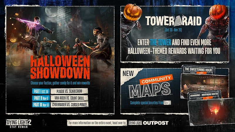 Techland bringt pünktlich zu Halloween ein neues Event in Dying Light 2: Stay Human. Der Halloween Showdown verwandelt Villedor in eine düstere, von Infizierten überlaufene Partyzone - mit neuen Belohnungen, Gegnern und schaurigen Überraschungen.