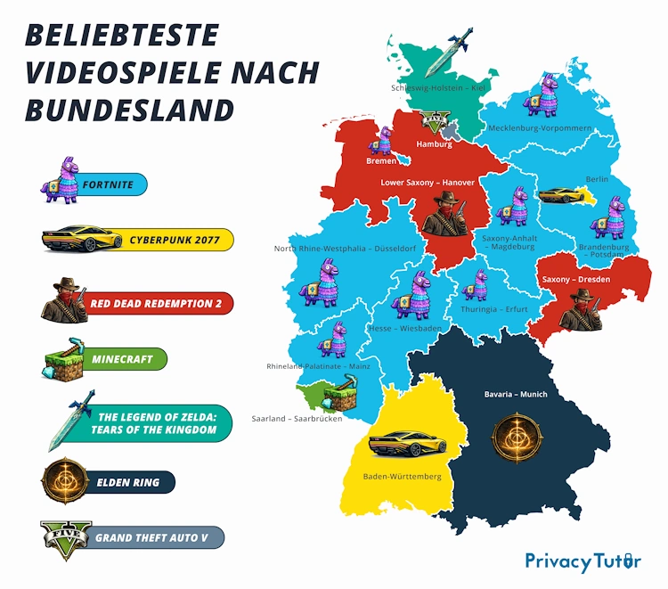 Welche Spiele und Konsolen dominieren in Deutschland? Eine neue Analyse zeigt: Die Vorlieben unterscheiden sich je nach Bundesland deutlich - von Fortnite-Hochburgen bis hin zu überraschenden Einzelgängern wie Elden Ring oder Zelda.
