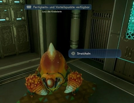 Schon früh im Spiel könnt ihr ein Krebslerin-Haustier namens Lucy adoptieren. Auf der Krebsler Ranch, südlich des Landeplatzes von Paradise, trefft ihr auf eine Farmerin, deren Krabbelwesen sich mit zu viel Purpleberry Krunch überfressen hat - Auntie’s Choice lässt grüßen.