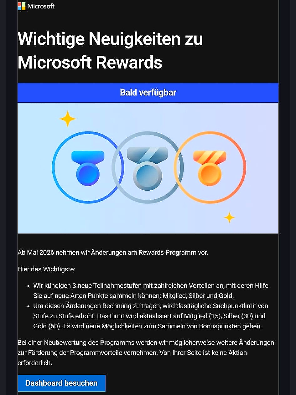 Microsoft betont, dass das Rewards-System weiterhin angepasst werden kann. Weitere Änderungen zur Optimierung der Belohnungsstruktur sind laut Ankündigung nicht ausgeschlossen. Nutzer müssen dabei keine aktiven Schritte unternehmen - die Umstellung erfolgt automatisch.