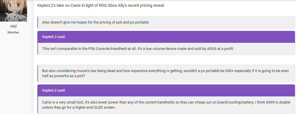 Der bekannte Hardware-Insider KeplerL2 äußerte sich dazu im ResetEra-Forum. Seiner Einschätzung nach sei der Vergleich mit dem ROG Ally gar nicht passend, da es sich bei ASUS’ Gerät um ein Nischenprodukt handle, das bewusst teuer verkauft werde.