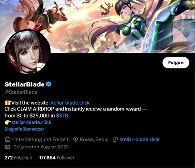 „Der offizielle Stellar Blade-Account wurde kompromittiert, und derzeit werden unautorisierte Beiträge mit Kryptowährungs-Airdrops und verdächtigen Anmeldeaktionen veröffentlicht.“